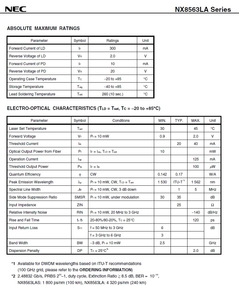 The NX8563LA Series is a 1 550 nm Multiple Quantum Well (MQW)