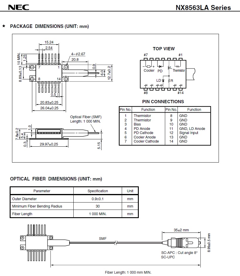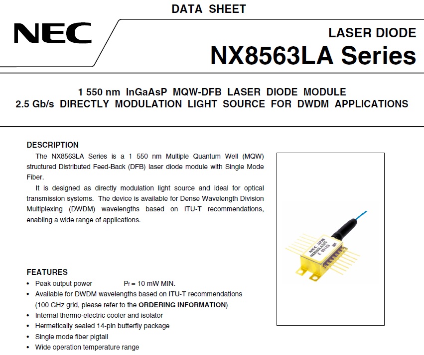 NEC 1550nm MQW DFB Laser Diode 10mW 14-Pin Butterfully NX8563LA