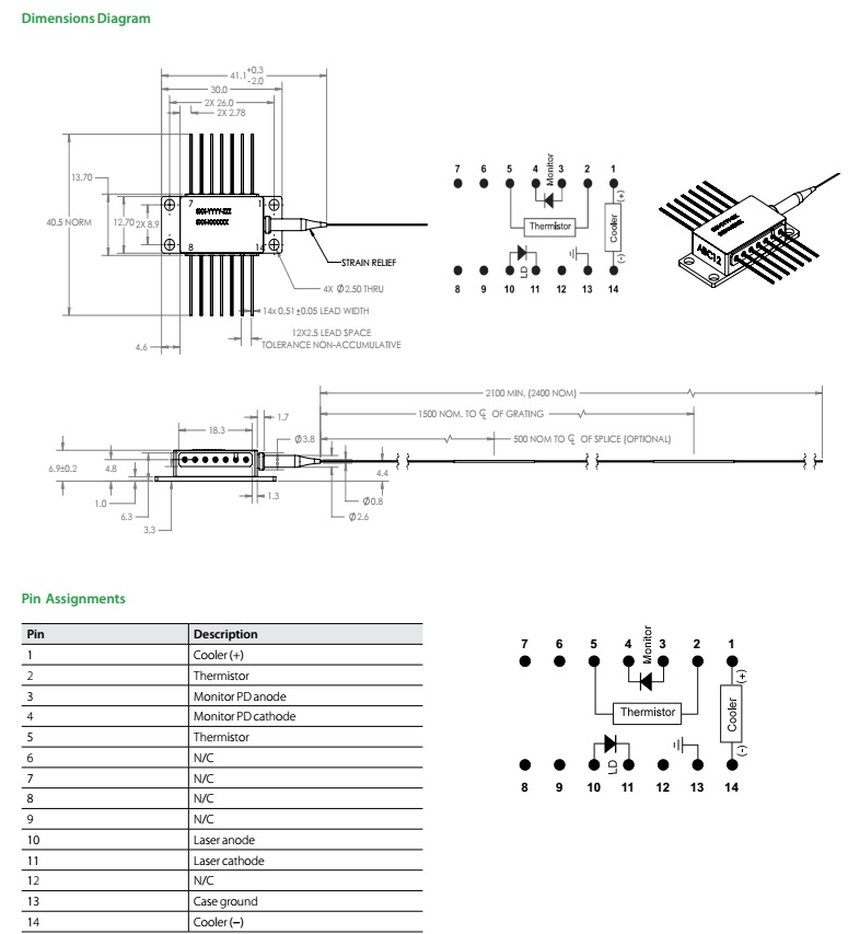 • Integrated thermoelectric cooler, thermistor, and monitor diode