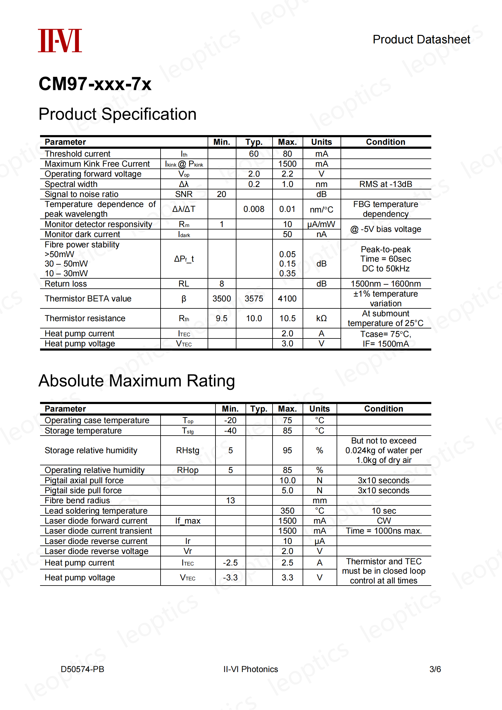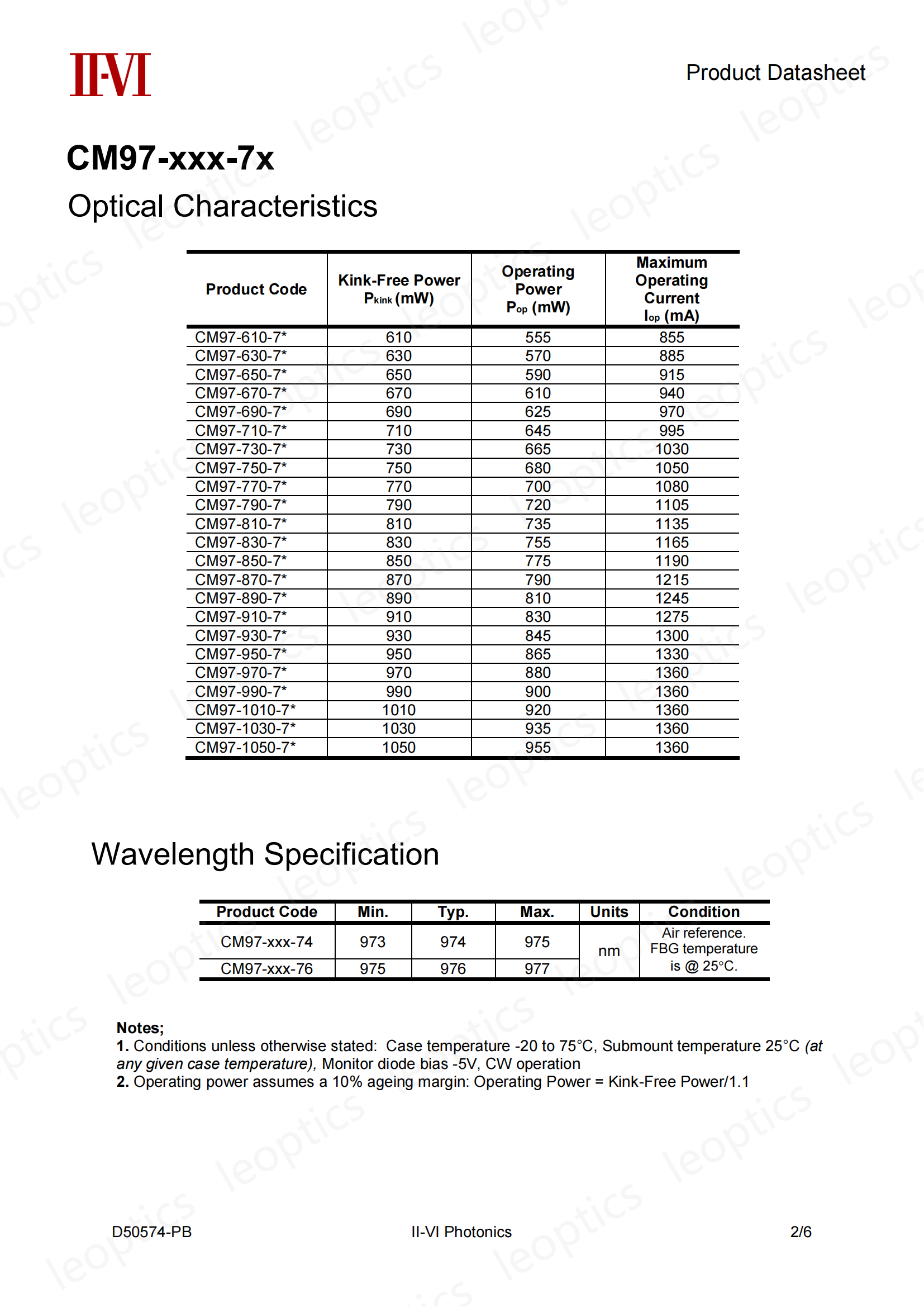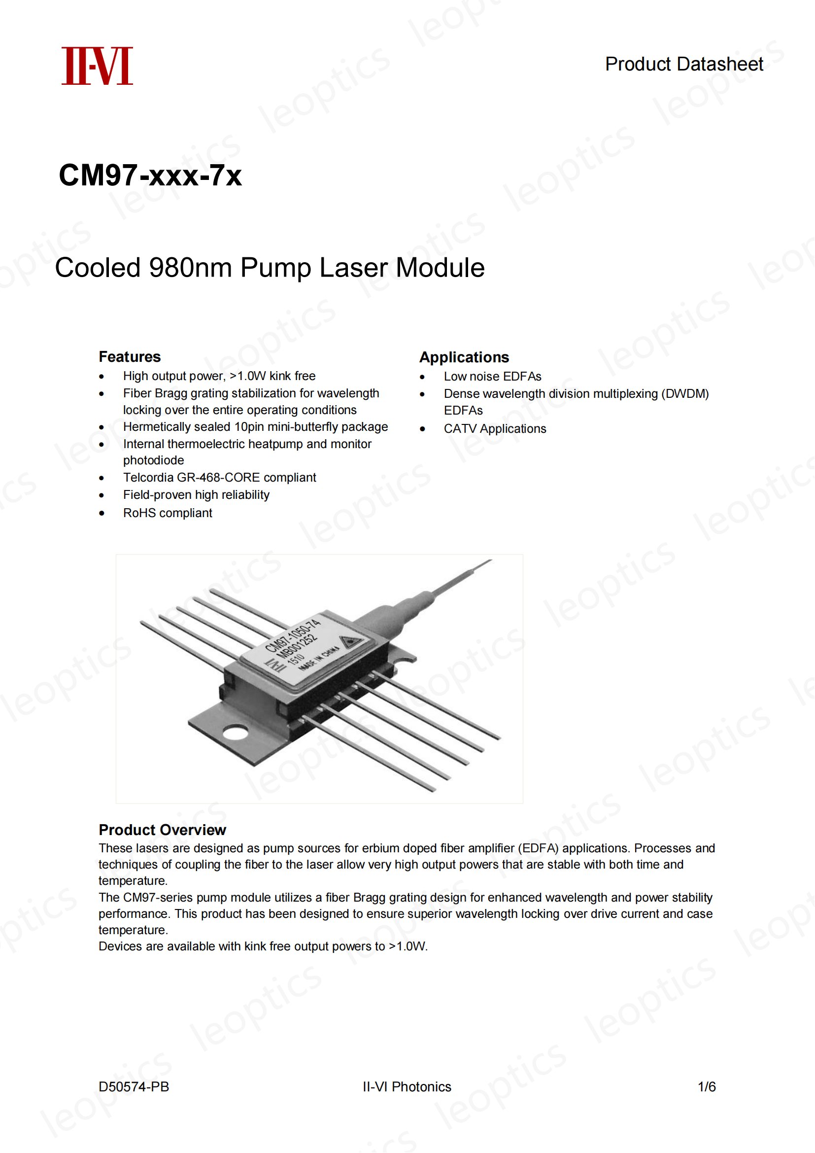 II-VI Cooled 980nm 830mW Pump Laser FBG EDFA 10Pin Mini-butterfly CM97-830-74