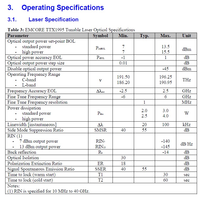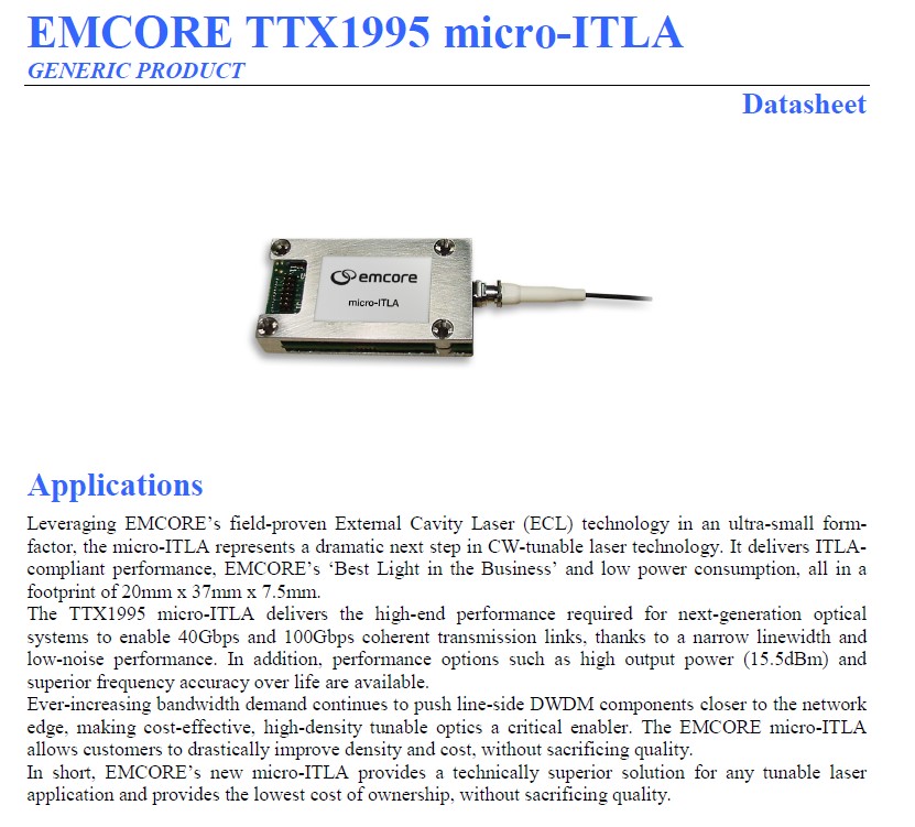 NeoPhotonics 104CH Micro-ITLA C Band 16dBm Narrow Linewidth 20kHz TTX199575H10AC0 TTX199575U10AE0
