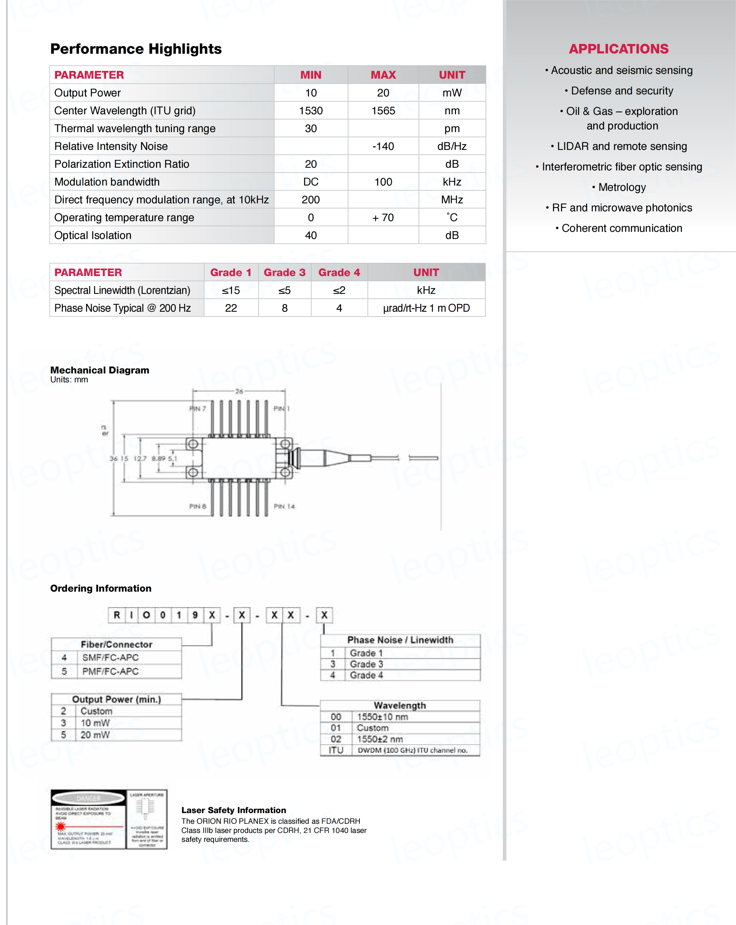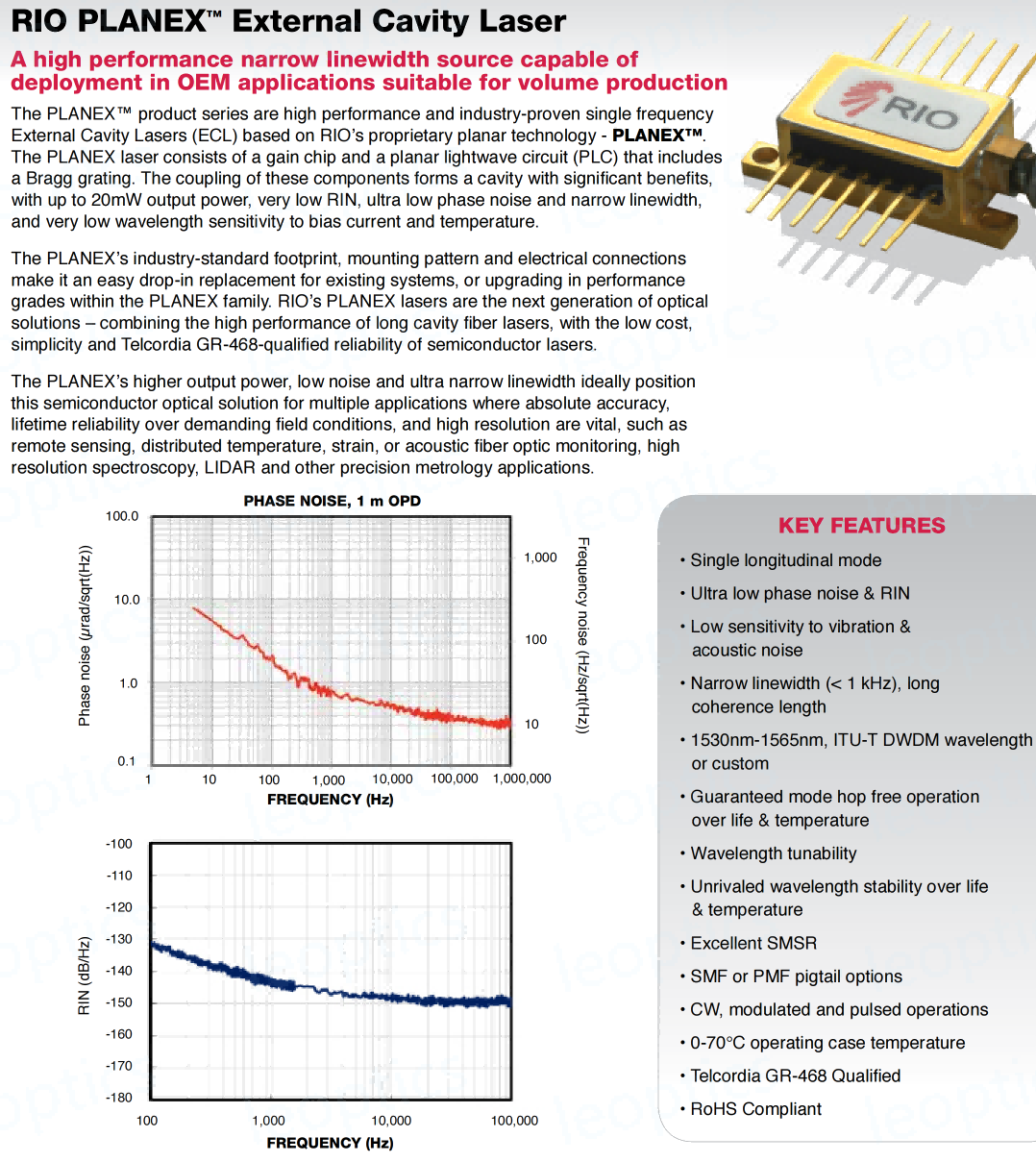 RIO PLANEX 1550nm Narrow Linewidth Laser Diode 1Khz 10dBm PMF