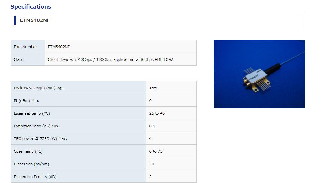 Sumitomo 40Gbps EML TOSA 1550nm 1.75dBm ETM5402NF