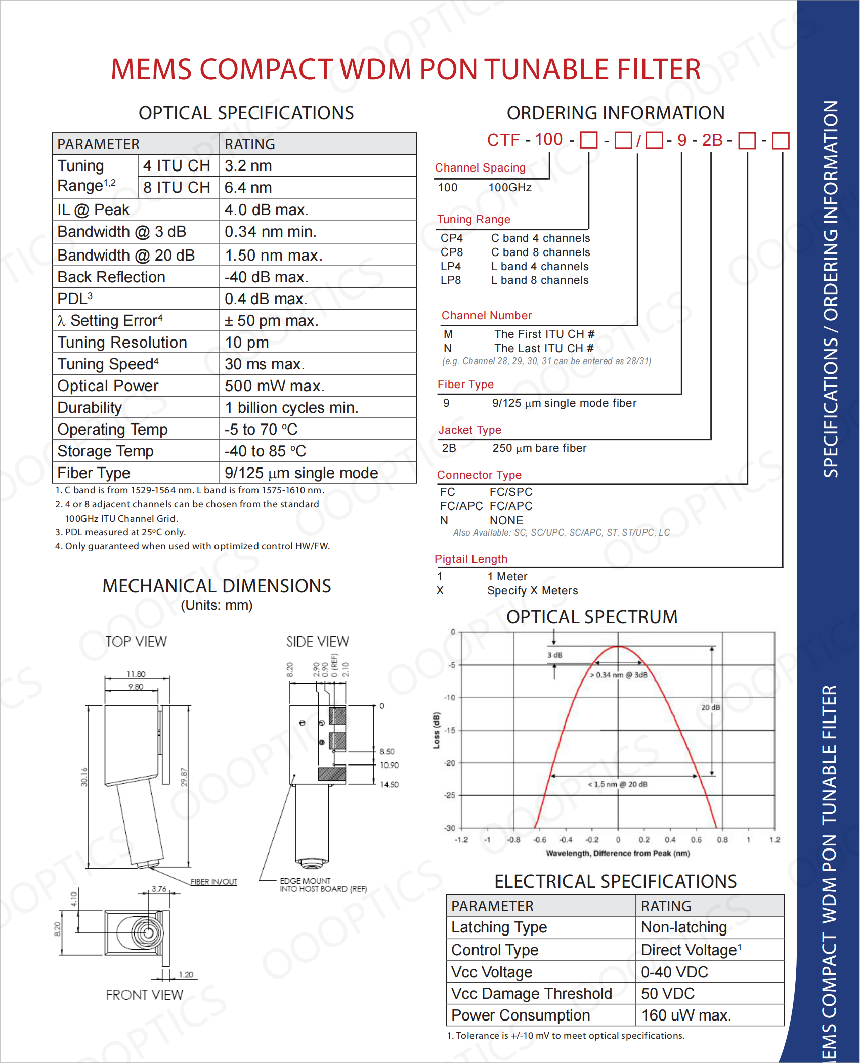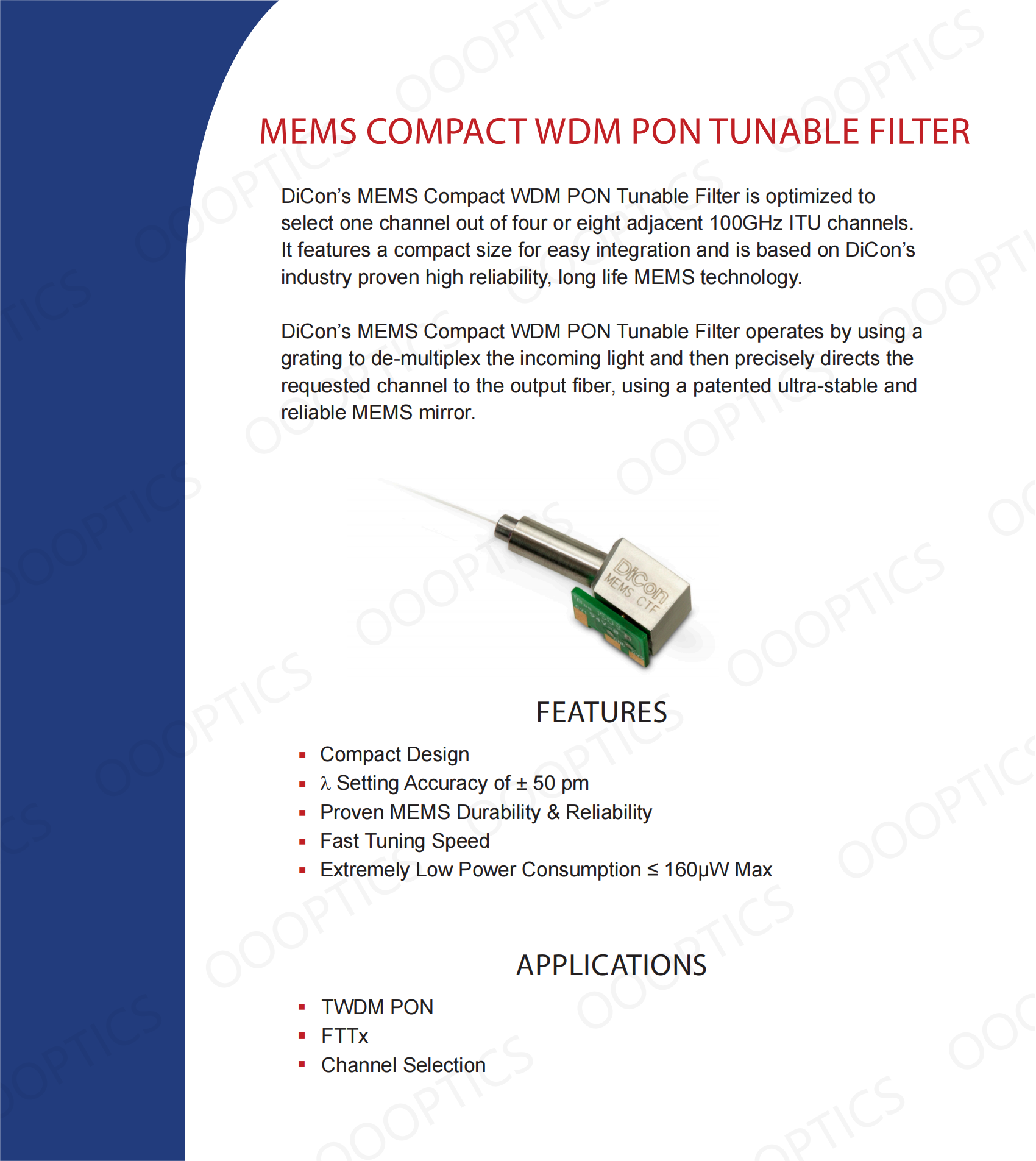 (Presale) DiCon MEMS Compact WDM PON Tunable Filter 100GHz CTF100
