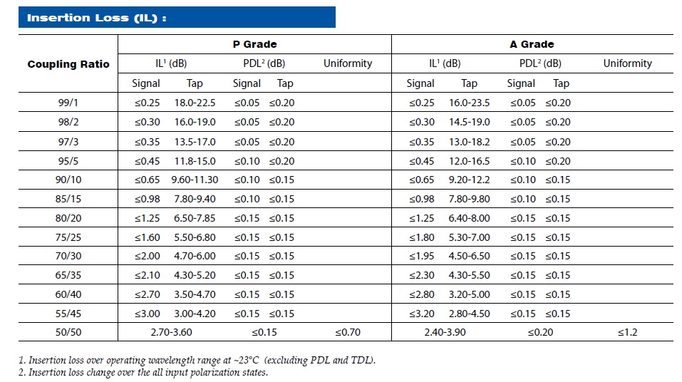 The Oplink fused dual window wideband fiber 1x2 (2x2) couplers provide