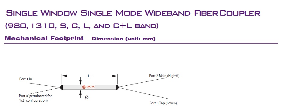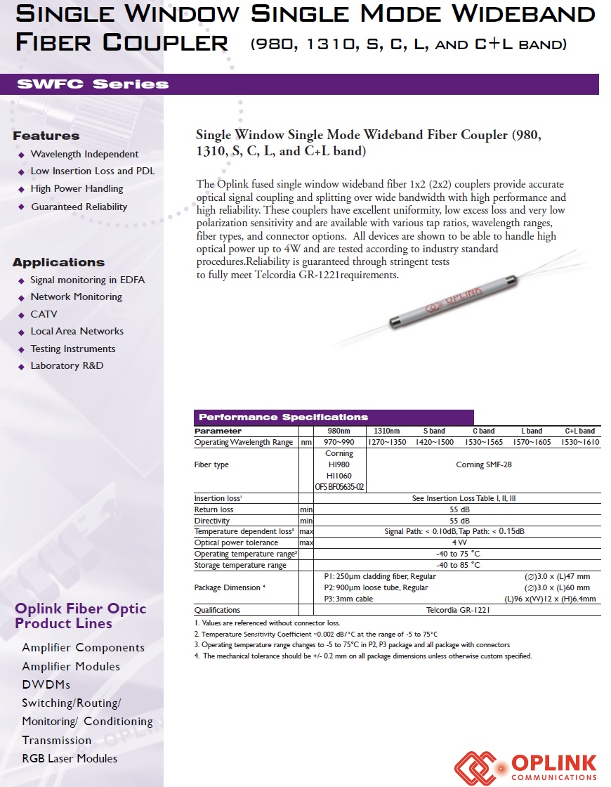 OPLINK Single Window Single Mode Wideband Fiber Coupler 1528-1565nm SWFC Series