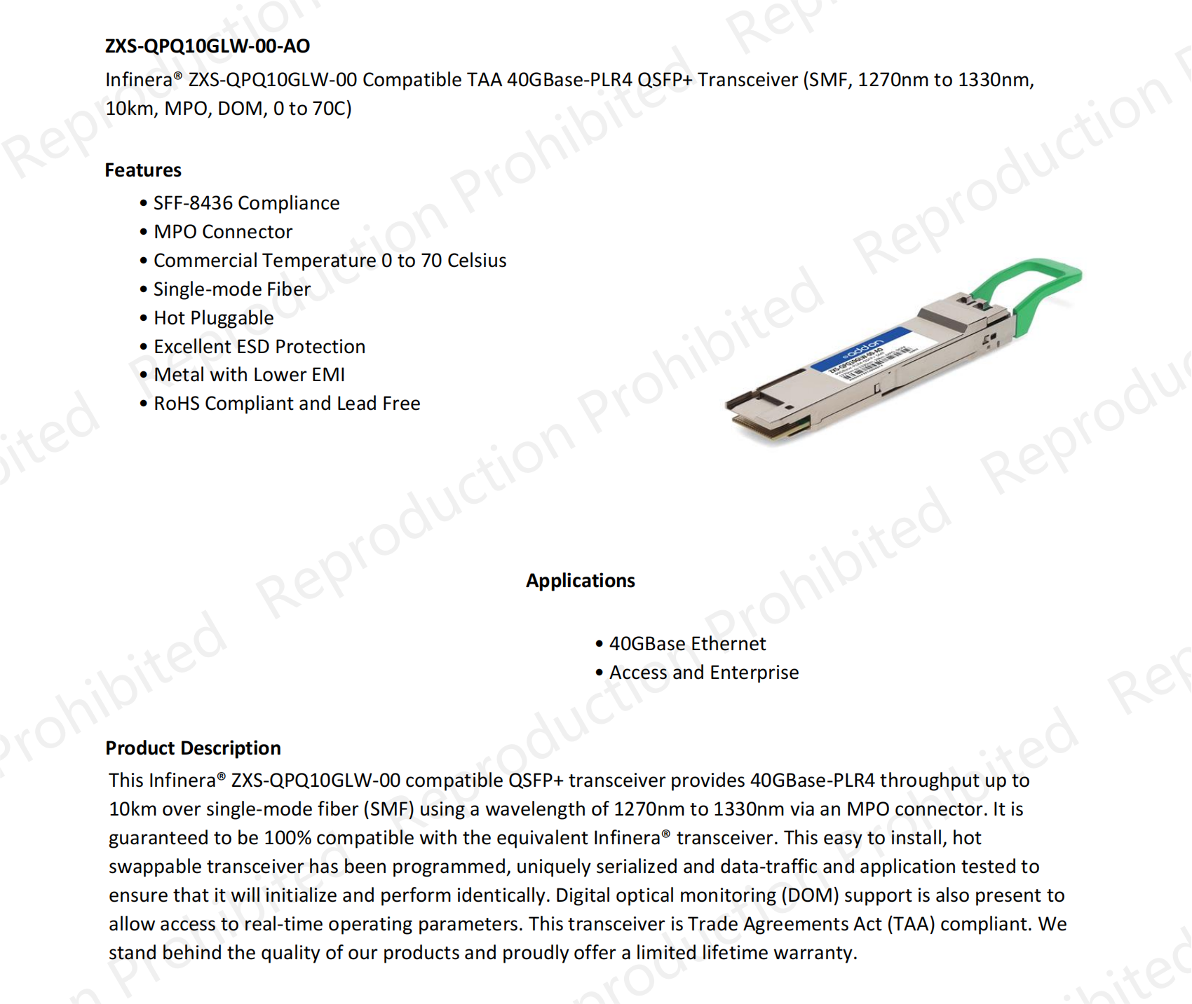 Infinera ZXS-Q8L4ZZZZ-00 Compatible TAA 100GBase-LR4 QSFP28 Transceiver 10km