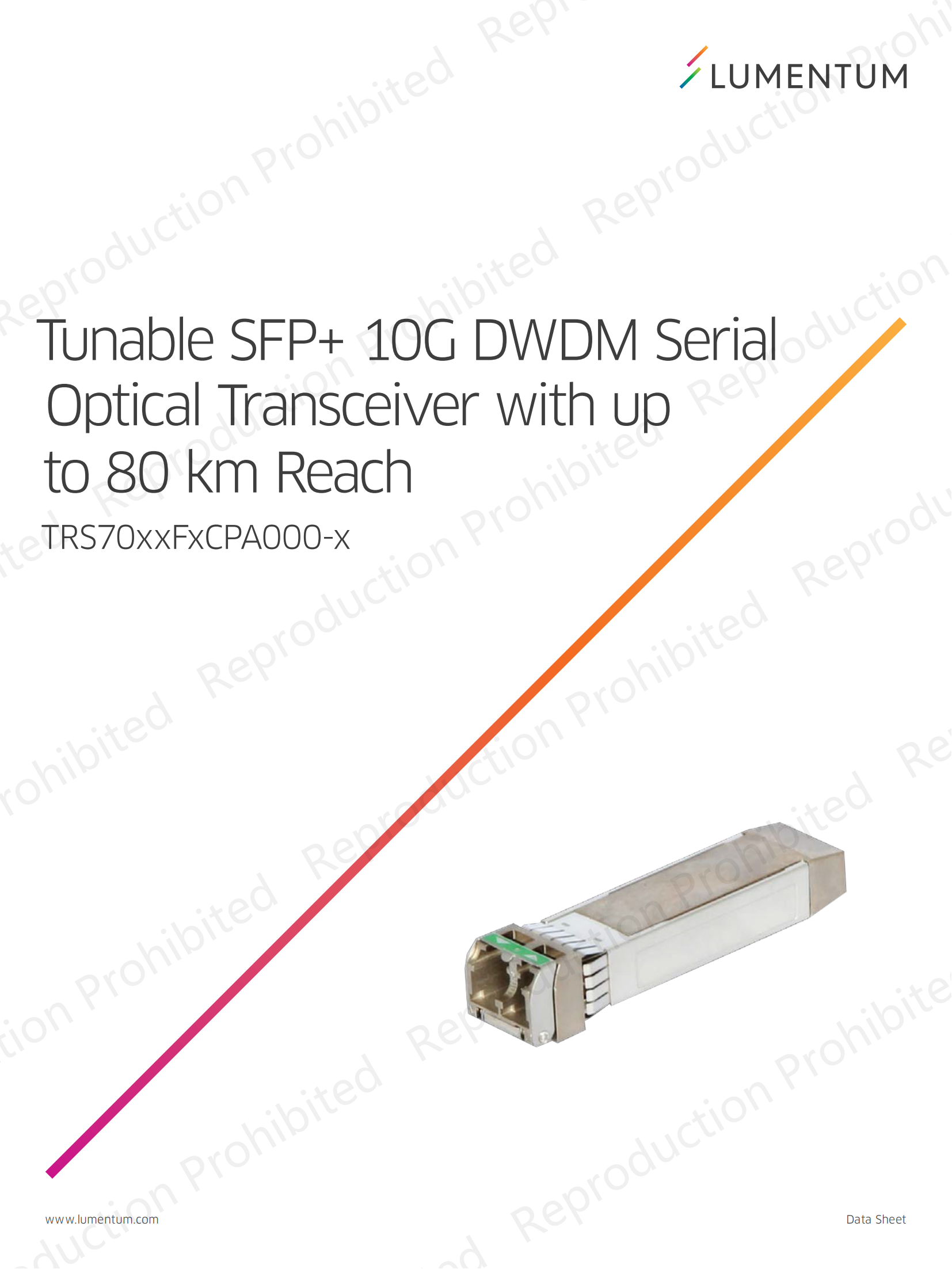 Lumentum T-SFP+ 10G DWDM Serial Optical Transceiver 80km C Band 1528-1568