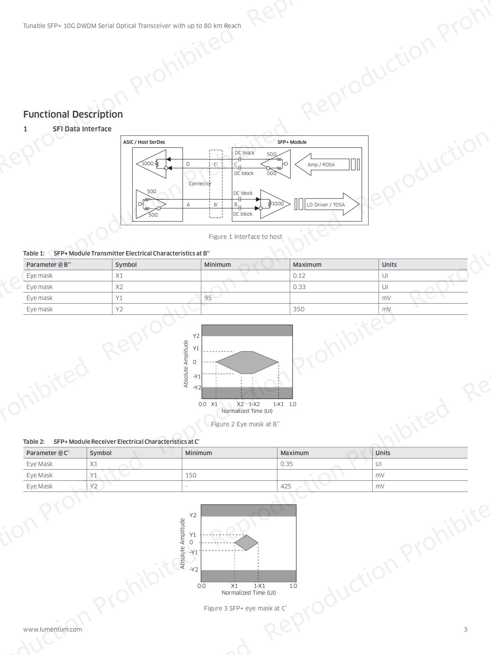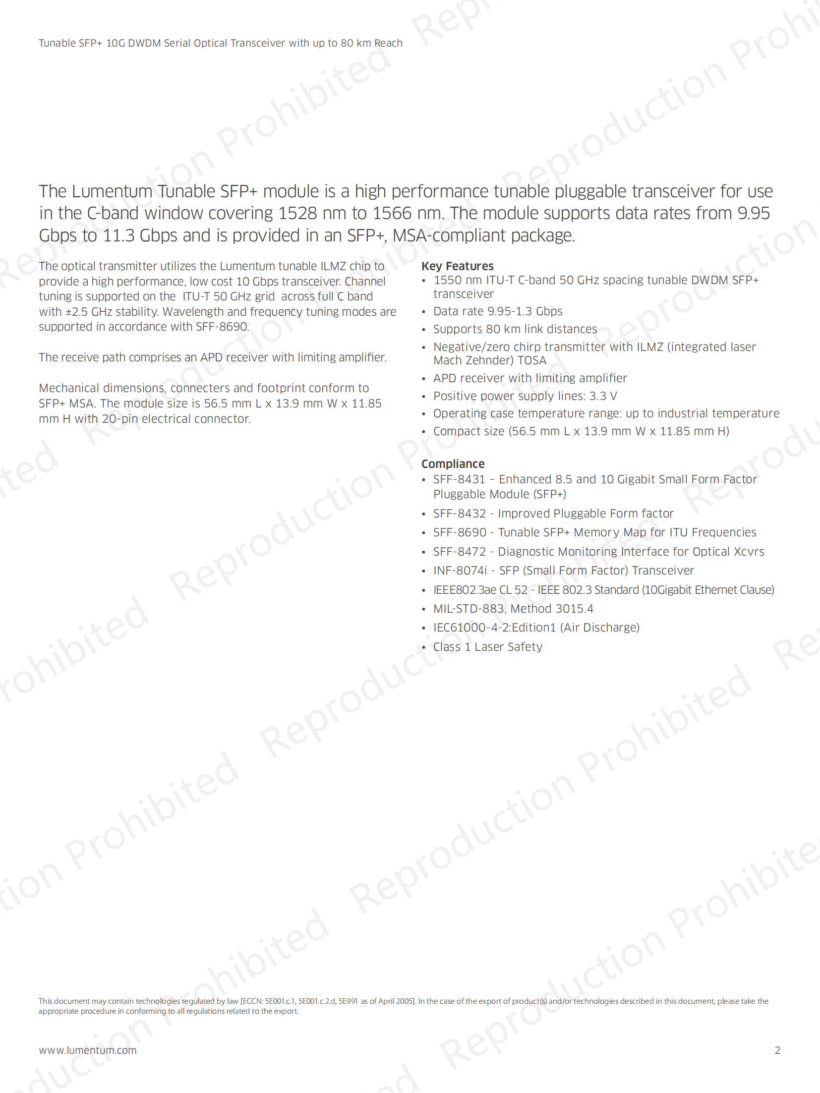 • 1550 nm ITU-T C-band 50 GHz spacing tunable DWDM SFP+