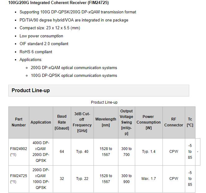 100Gbps Fujitsu Integrated Coherent Receiver DP-QPSK PBS Hybrid SFF ICR FIM24707/303
