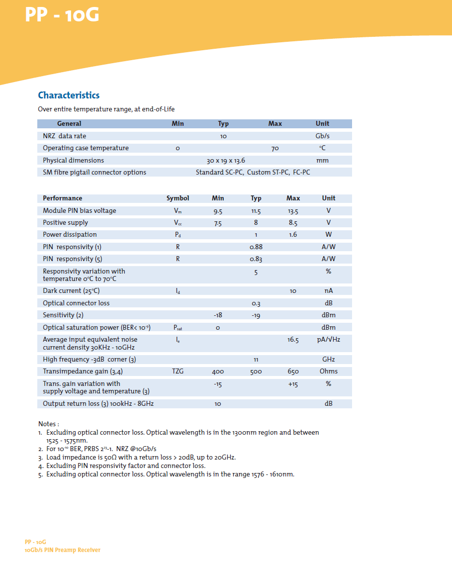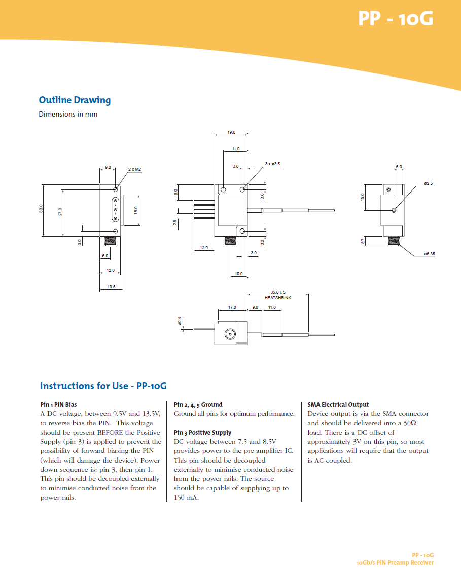 single-mode fibre pigtail and a 50 Ω SMA