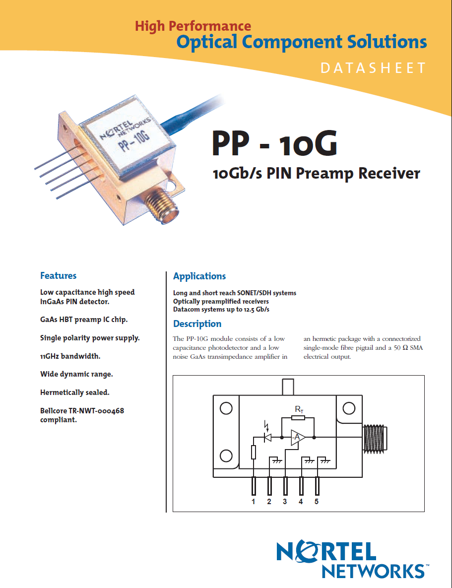 NORTEL 10Gb/s PIN Preamp Receiver PP-10G module With Photodetector And Amplifier