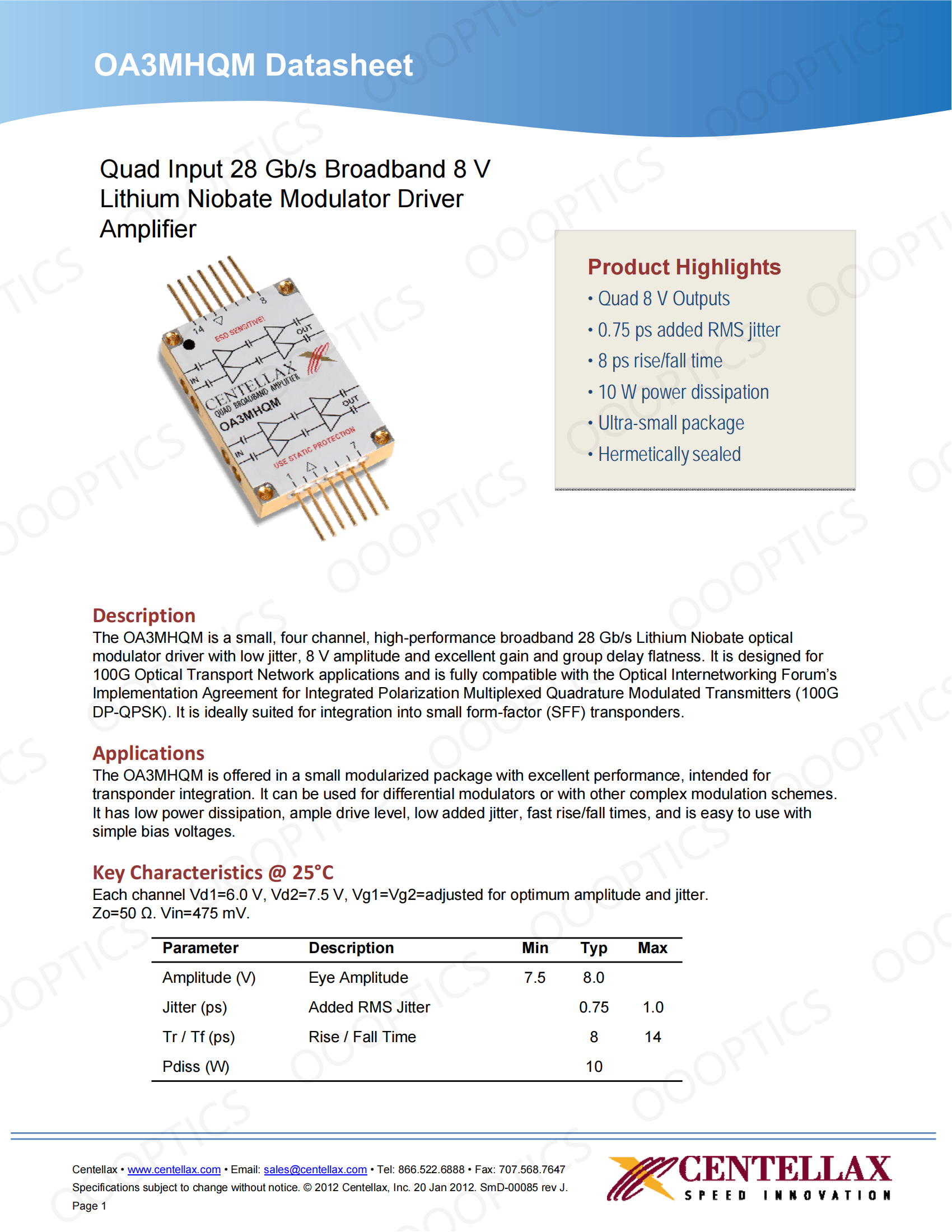 It is designed for 40 to 100 Gb/s Ethernet QPSK and DQPSK SONET optical modulator driver applications.