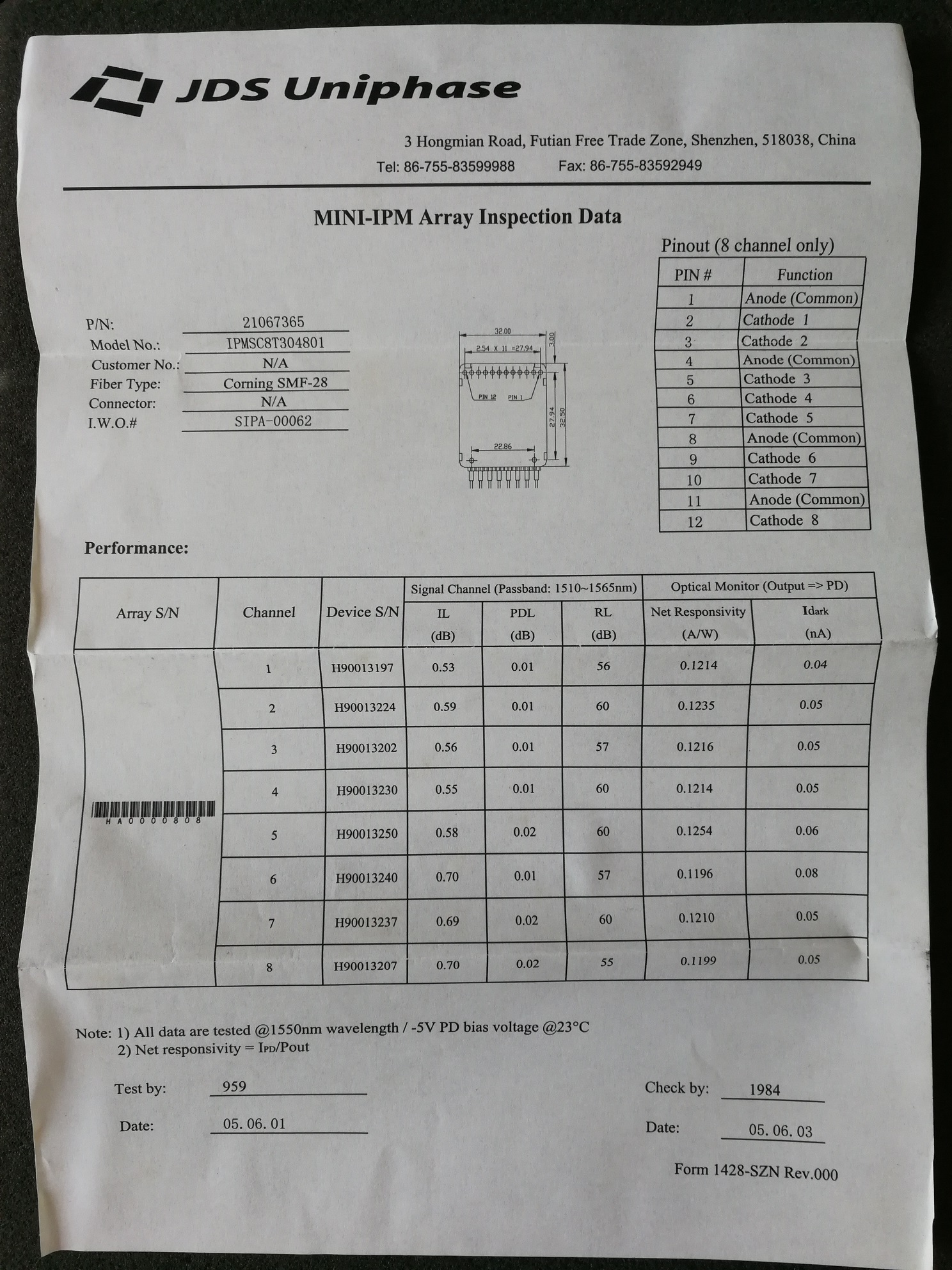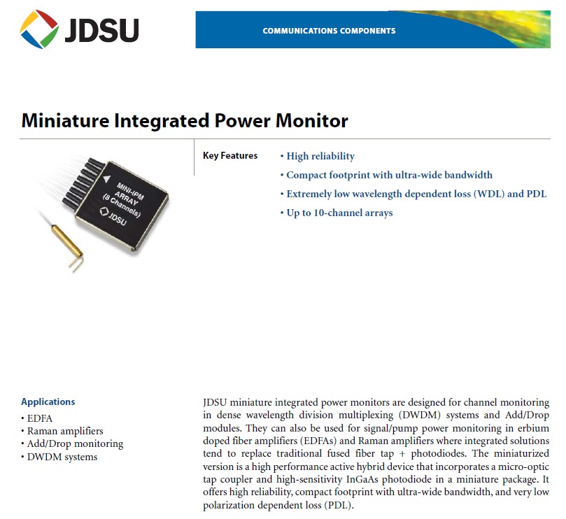 JDSU C Band Miniature Integrated Power Monitor IPM Array 8-Channel Array