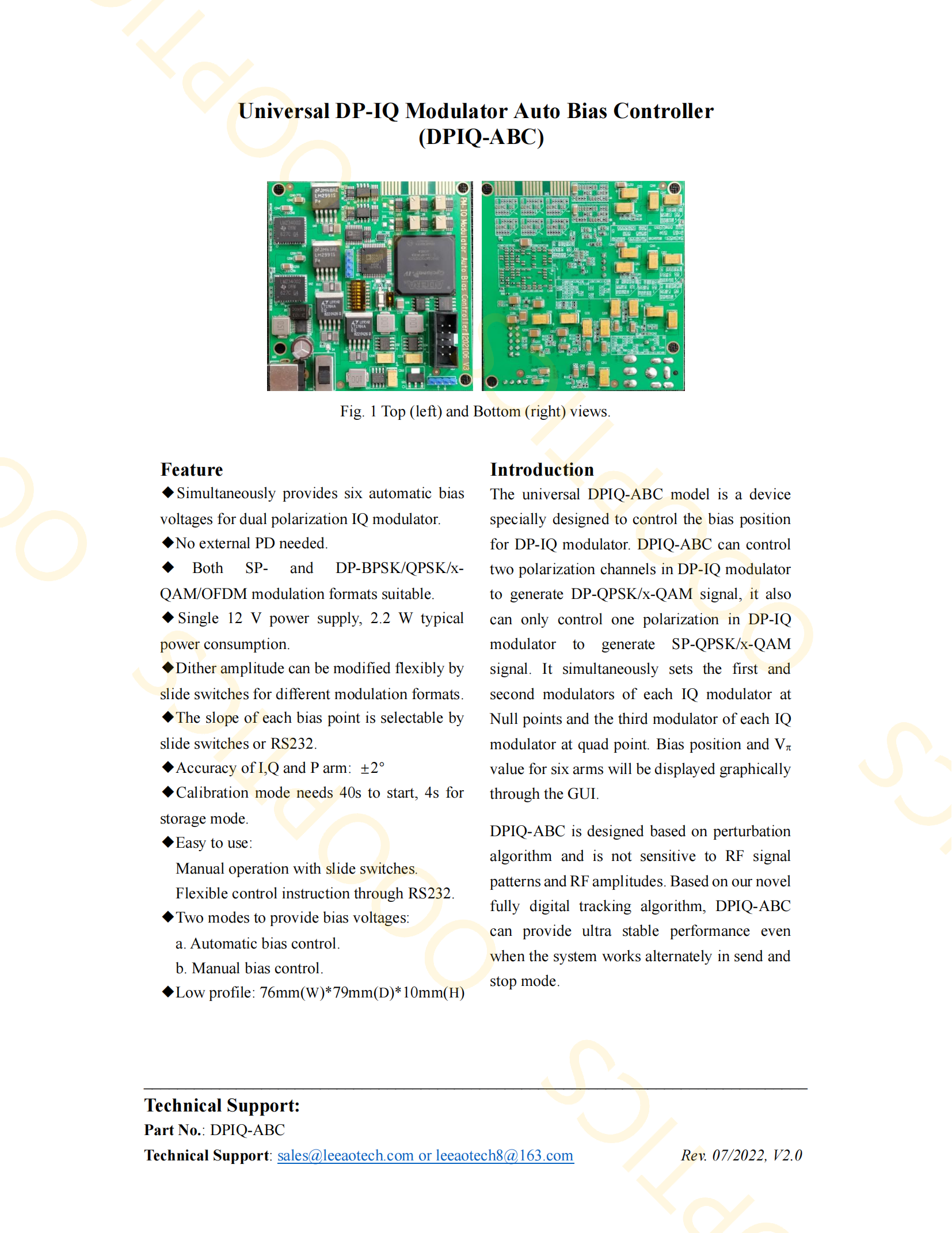 Bias IQ Modulator MZM Automatic Bias Control Module Single Polarization