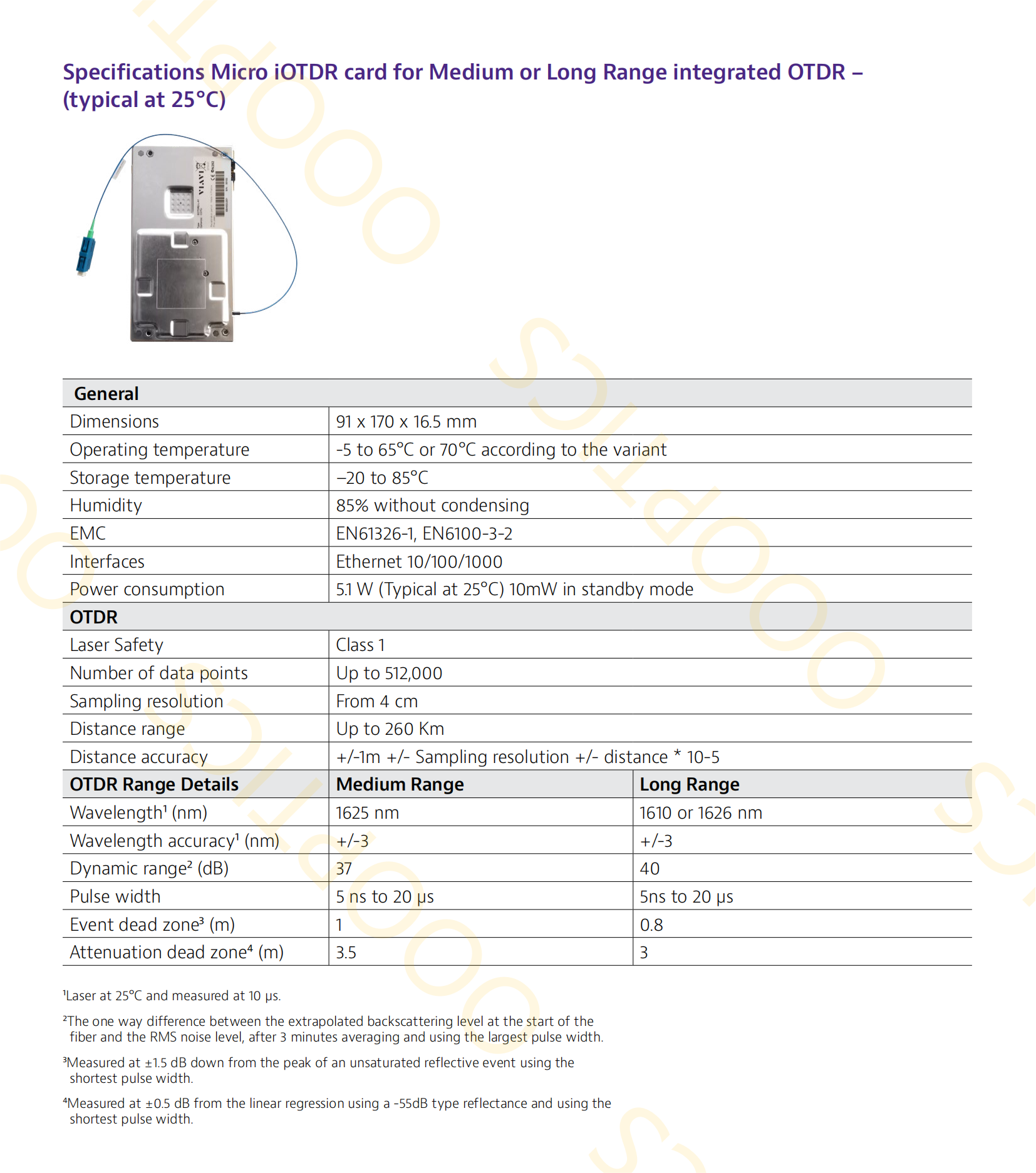 VIAVI Micro iOTDR Card EOTDR-1625-DFB1 1625nm For Medium Range integrated OTDR
