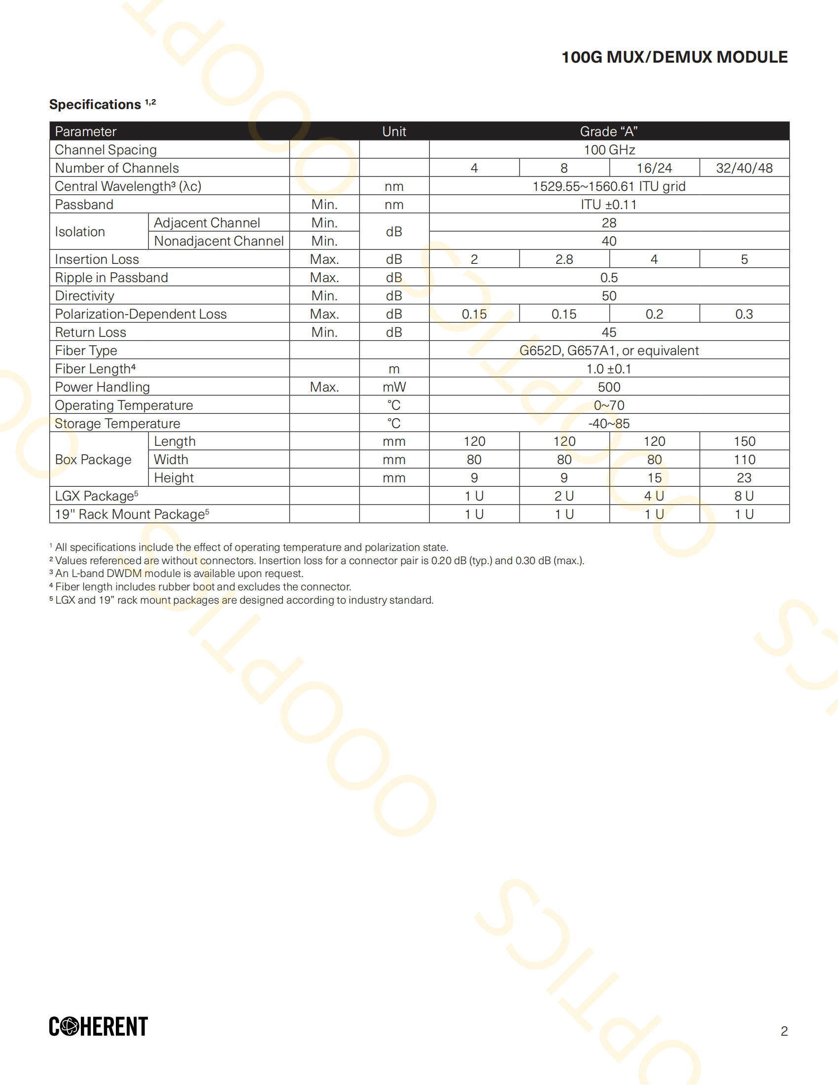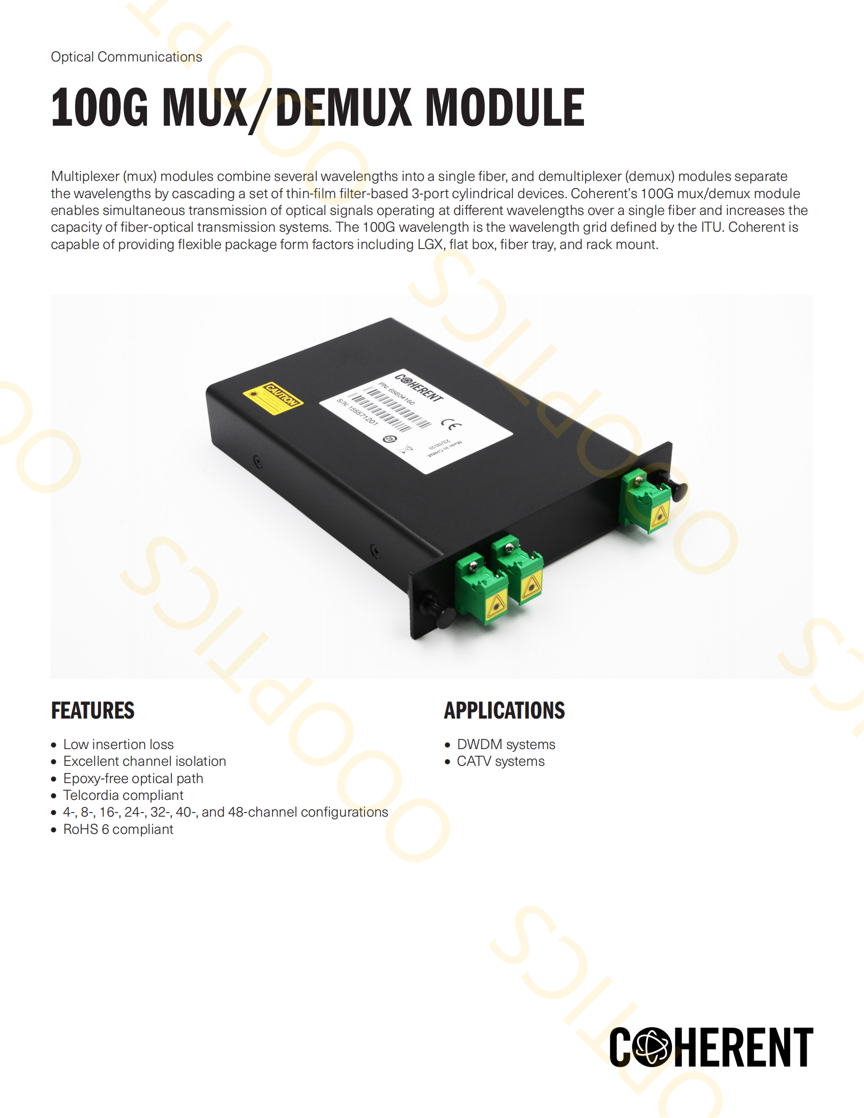 II-VI 100G MUX/DEMUX MODULE C-Band 10CH_A 1529.55~1560.61 ITU Grid DWDM/CATV