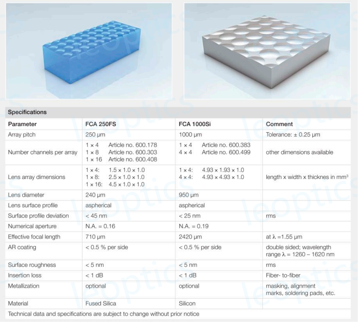 Axetris Fiber Coupling Micro-Lens Array FCA 250FS