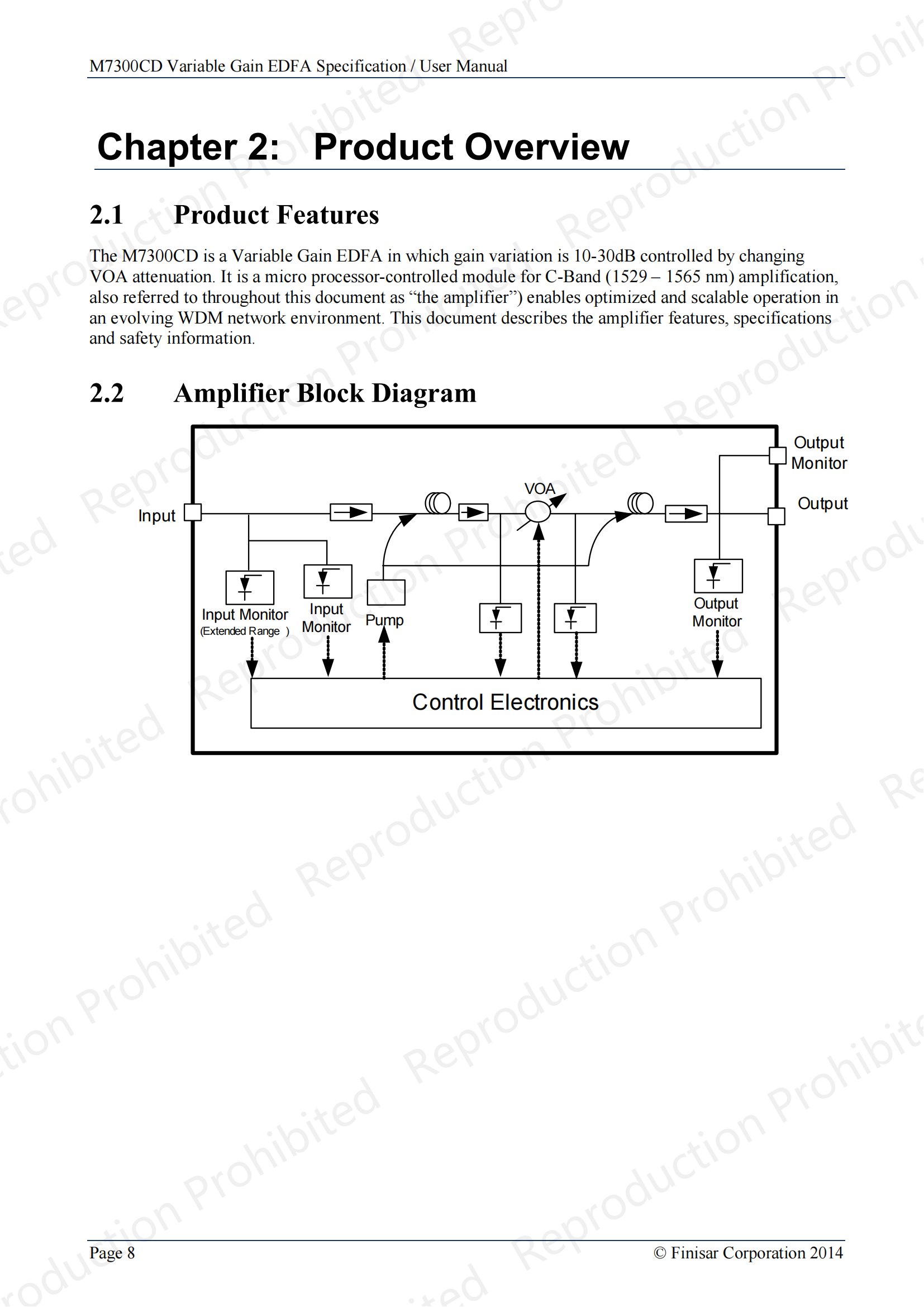 VOA attenuation. It is a micro processor-controlled module for C-Band (1529 – 1565 nm) amplification,