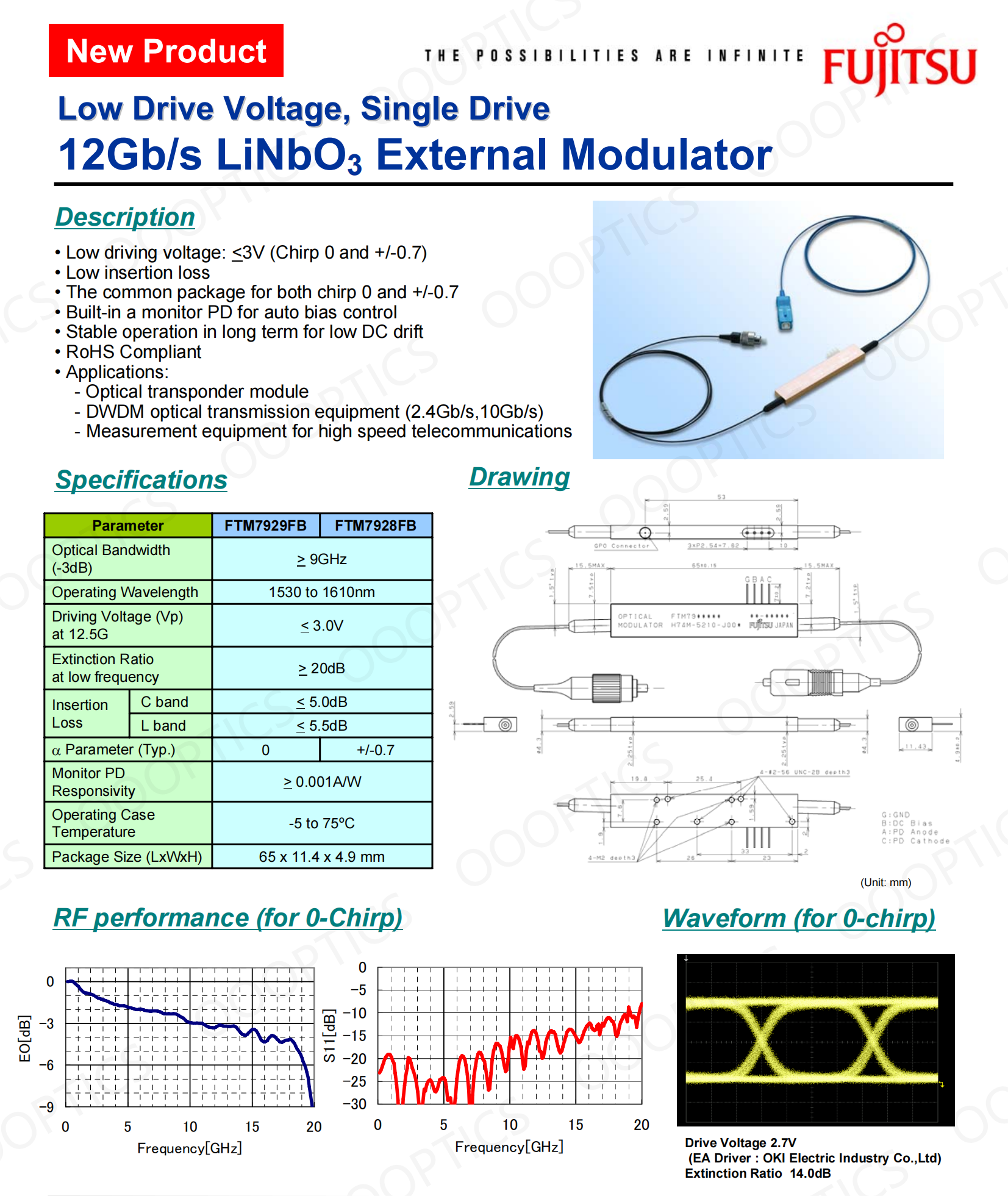 Fujitsu FTM7929FB 9GHz 12Gb/s Single Drive LN External Modulator C/L band