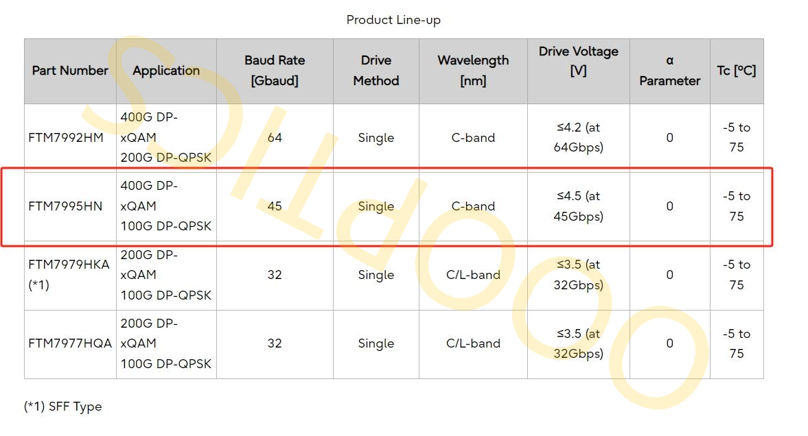 Fujitsu FTM7995HN 400G DP-xQAM 100G DP-QPSK ≤4.5V At 45GBaud Single Drive